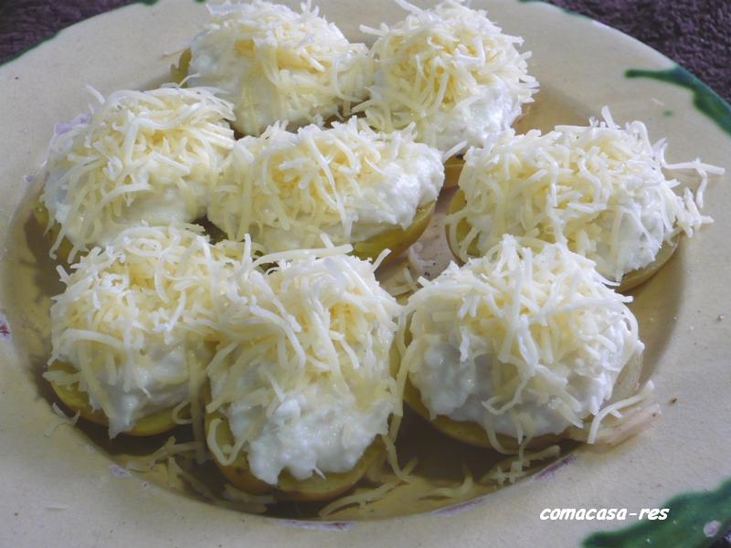 Rentem bé les patates, les punxem i col·loquem en un plat, tapem amb film i coem al microones, màxima potència uns 6 minuts (les punxem per assegurar-nos que estan cuites)