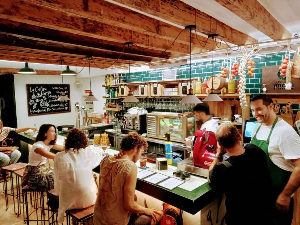 El local és petit, però molt acollidor. Tot i això, Cantina Panzá té una terrassa a la Rambla, especialment ideal per gaudir durant els dies de primavera, d’estiu i, fins i tot, de tardor.