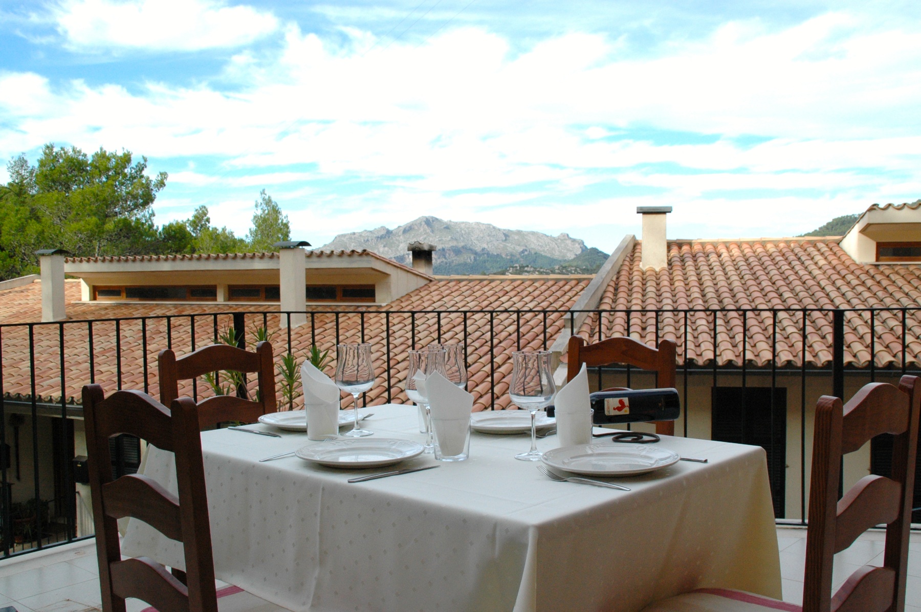 La sala del restaurant Can Gallet és espaiosa i tenen d’una terrassa exterior i una altra d’interior amb vista al puig Roig i al puig Ciuró de la Serra de Tramuntana.