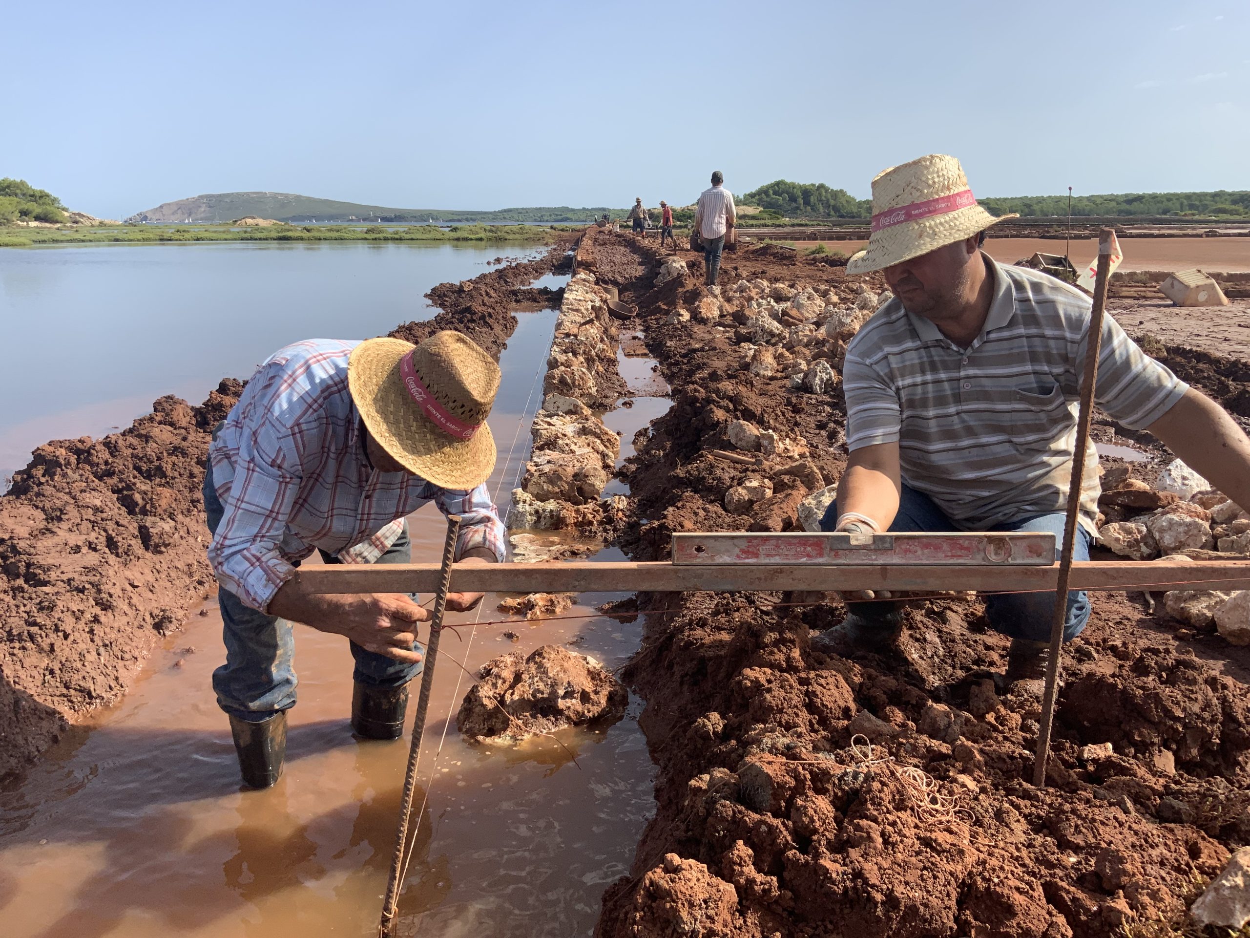 La gran majoria de tots aquests treballs s’han dut a terme amb la col·laboració i la implicació d’empreses menorquines el contractista de referència de les quals ha estat Obres Sa Taula de la mà de Juanjo Fedelich. Les instal·lacions han estat dutes a terme per l’empresa Domoelin i tot el material de pedra de marès ha procedit de la planta de Líthica. De la mateixa manera, el suport tècnic ha tingut la direcció de l’arquitecte Daniel Gutiérrez, l’experiència salinera de Haddou Ichekhlaf i els enginyers Elena Higueras, Toni Roca i Guillermo Casas. Per a l’execució de tota l’obra, han intervingut un total de trenta treballadors, l’activitat dels quals s’ha dut a terme sota criteris d’un ús mínim de maquinària, així com l’ús majoritari de materials naturals procedents de la mateixa illa -argila, pedra de marès i grava-.