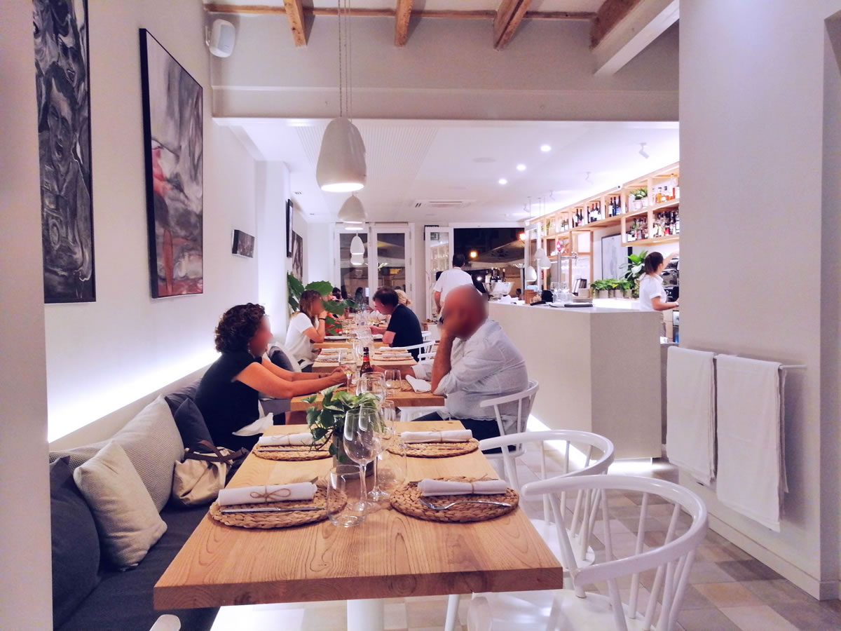 Dídac Pons dirigeix la sala amb un servei atent. Hi destaca la presència de vins de Menorca. El local ofereix diferents possibilitats d’àpats ja que es divideix en la planta baixa, el primer pis i la terrassa de la Plaça dels Pins.