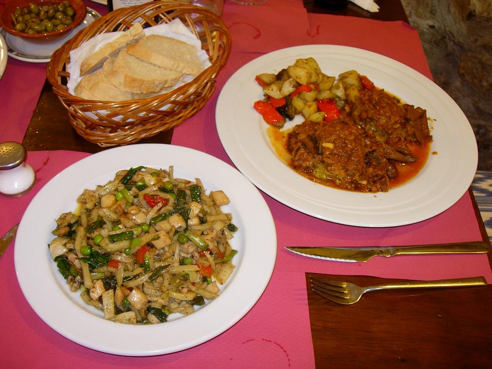De postres, gelats (d’herba-sana, d’ametlla torrada, de formatge tendre amb confitura d’albercocs) o pudin de formatge tendre amb confitura de maduixa i fruita vermella. Local bell i agradable.